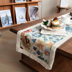 Summer Anne's Factory Suministro directo Jacquard Floral Tassel Camino de mesa de lujo