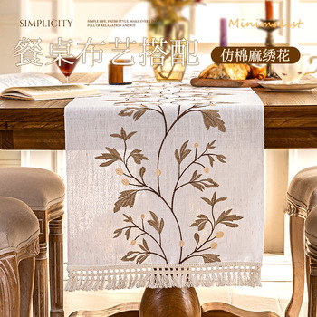 Verano Anne's Venta al por mayor Decoración de mesa Tira larga Tela Bordado Floral Hojas Camino de mesa